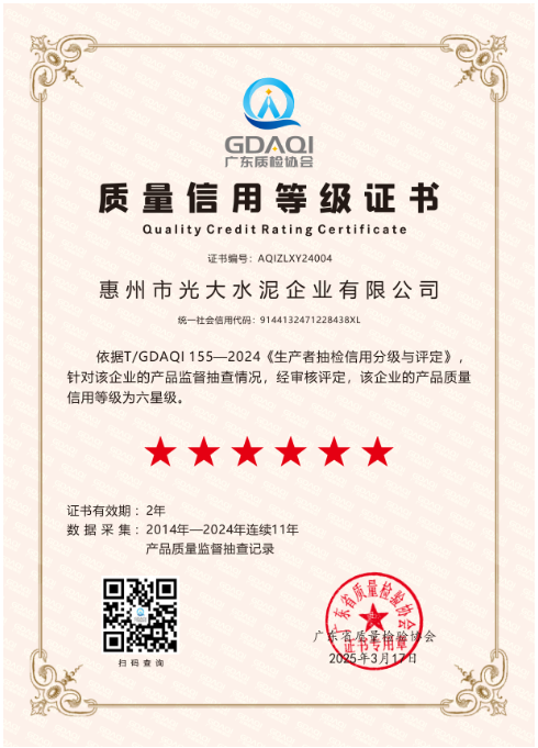 光大水泥榮獲廣東省質量信用最高等級榮譽證書[2025-05-16]